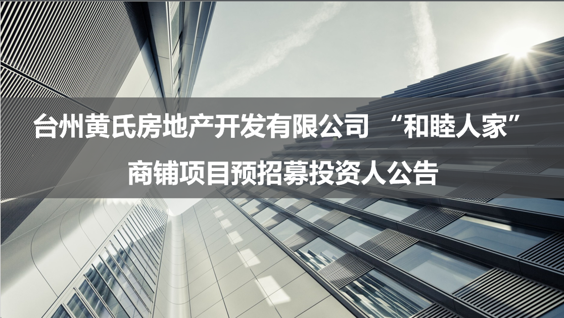 【台州】台州黄氏房地产开发有限公司 “和睦人家”商铺项目预招募投资人公告