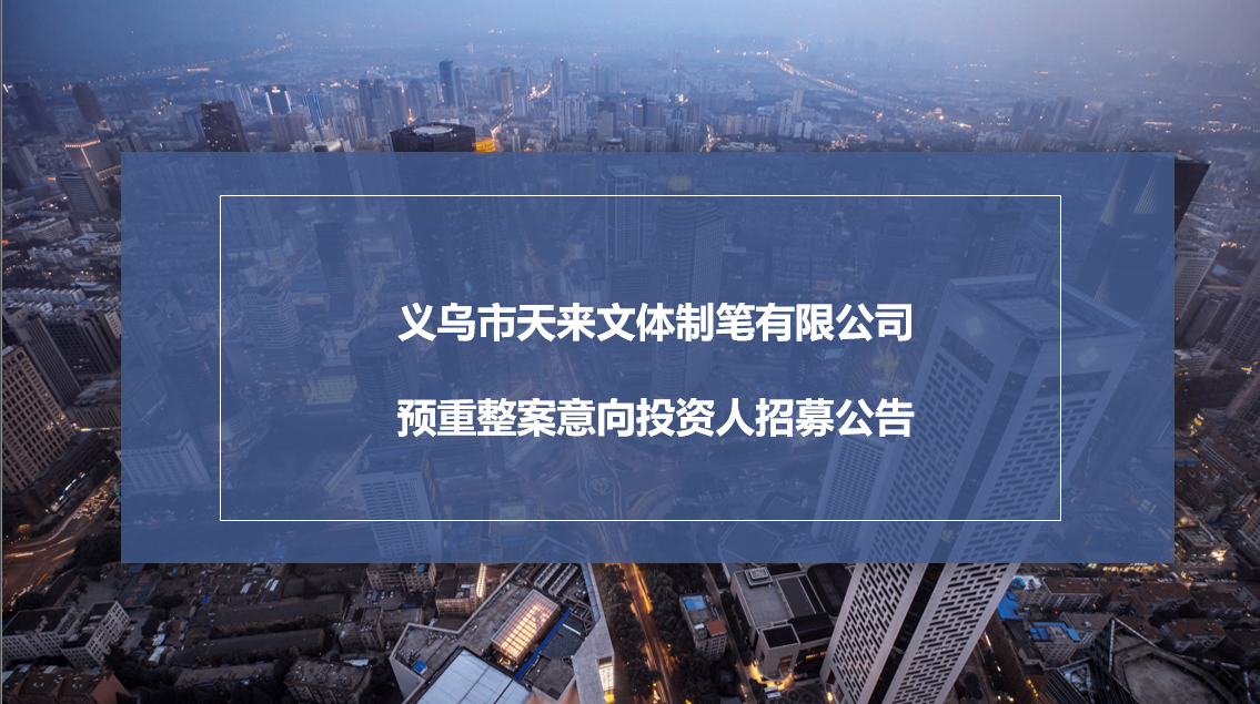 【金华】义乌市天来文体制笔有限公司预重整案意向投资人招募公告