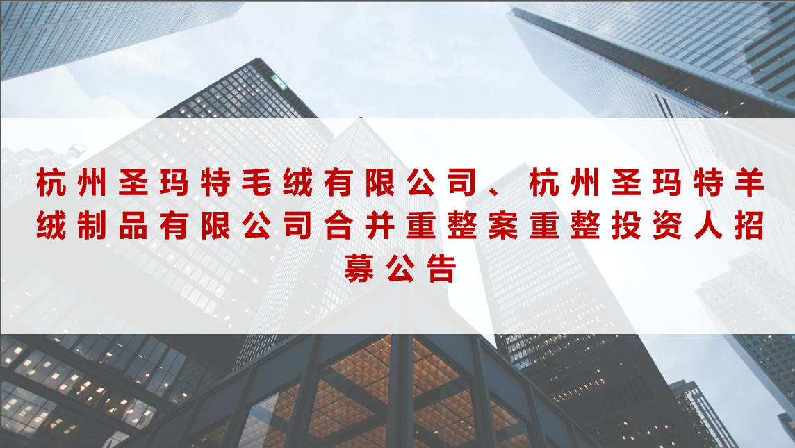 【杭州】杭州圣玛特毛绒有限公司、杭州圣玛特羊绒制品有限公司合并重整案重整投资人招募公告