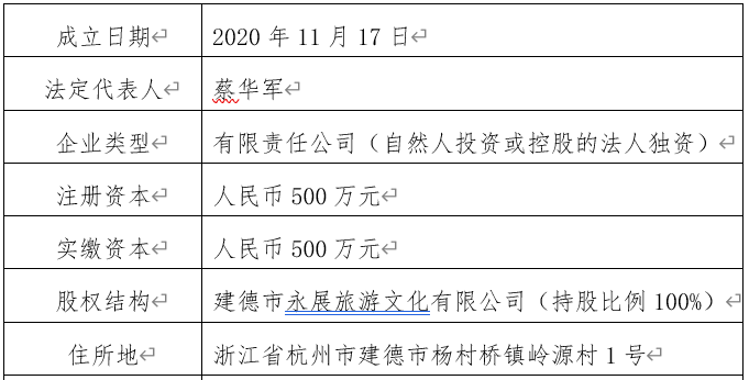 乐活岛酒店是建德永展乐活岛项目核心运营载体,负责住宿、餐饮、旅游接待等业务,工商注册登记情况如下: