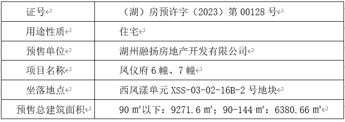 3.2023年12月5日,融扬公司取得海月凤仪府6幢、7幢的《商品房预售许可证》,具体信息如下: