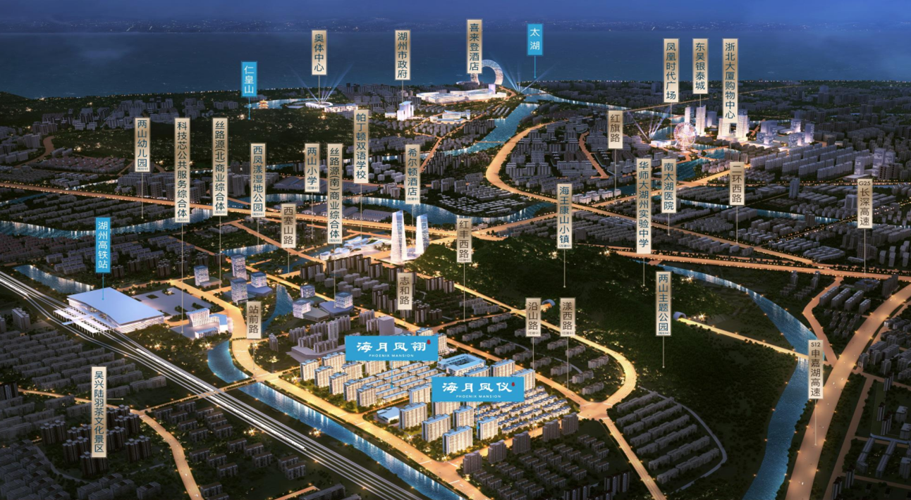 本项目地处“中枢之城”湖州,于西塞山前,是湖州科技城核心居住区,紧邻湖州高铁站,具体地理位置为湖州市吴兴区高铁站前红丰路与志和路交叉口南,距离市政府约9公里,湖州市第一人民医院、奥体中心、果蔬市场、主题公园等环绕周边,该地块交通便捷,地理位置优越。
