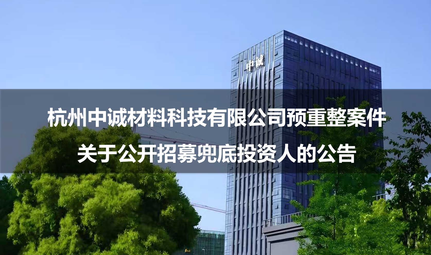 【杭州】中诚材料科技有限公司预重整案件关于公开招募兜底投资人的公告