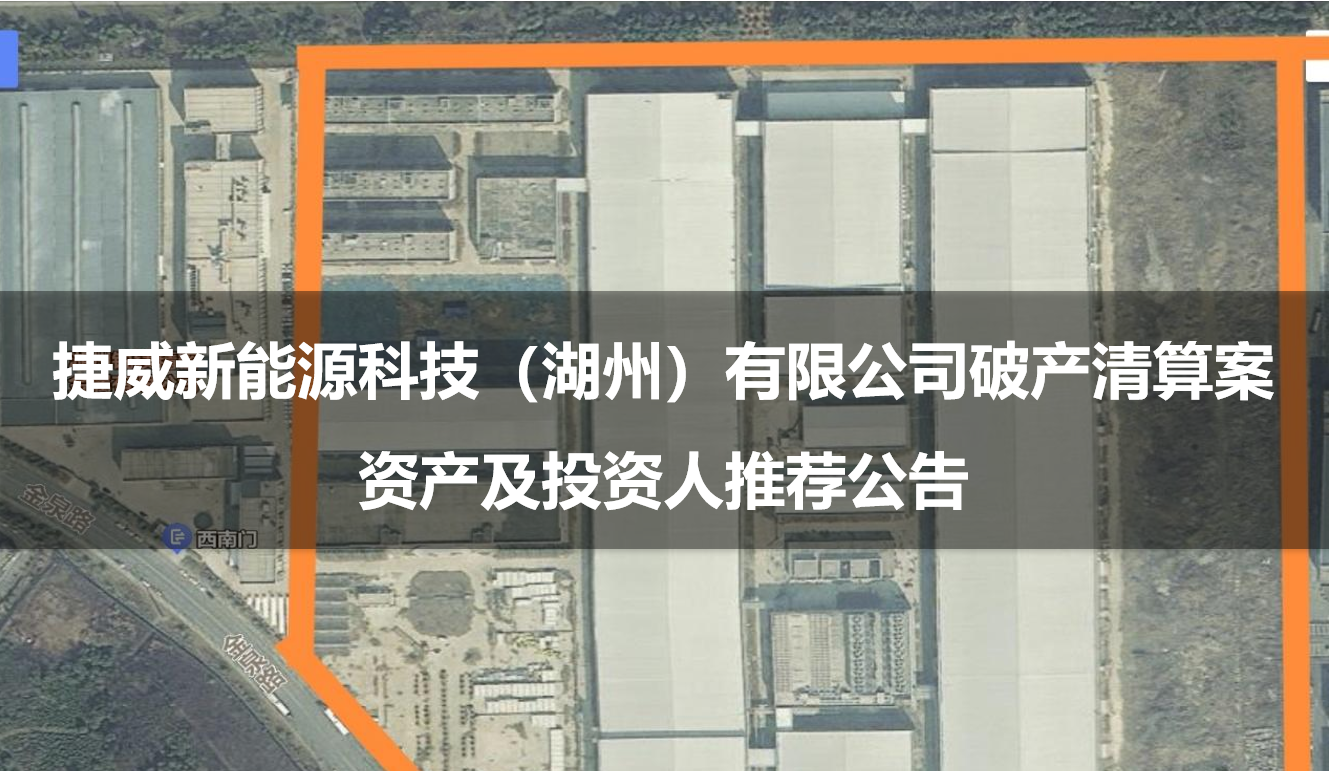 【湖州】捷威新能源科技(湖州)有限公司破产清算案 资产及投资人推荐公告