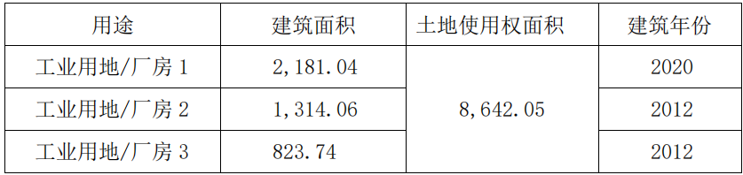 思进公司共持有国有土地使用权1宗,厂房(钢结构)3幢及少量无证辅助用房,其中厂房1为2层结构,厂房3设有夹层,夹层上方为办公室和仓库,具体信息如下: